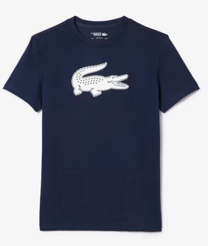 Med en regelmæssig, lige pasform er den perfekt til fuld bevægelsesfrihed. Det fremtrædende detalje? Et stort XL krokodilleprint på brystet, suppleret med et silikonekrokodillelogo for den ikoniske Lacoste-stil.