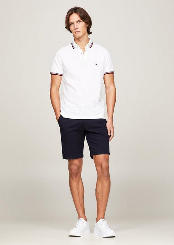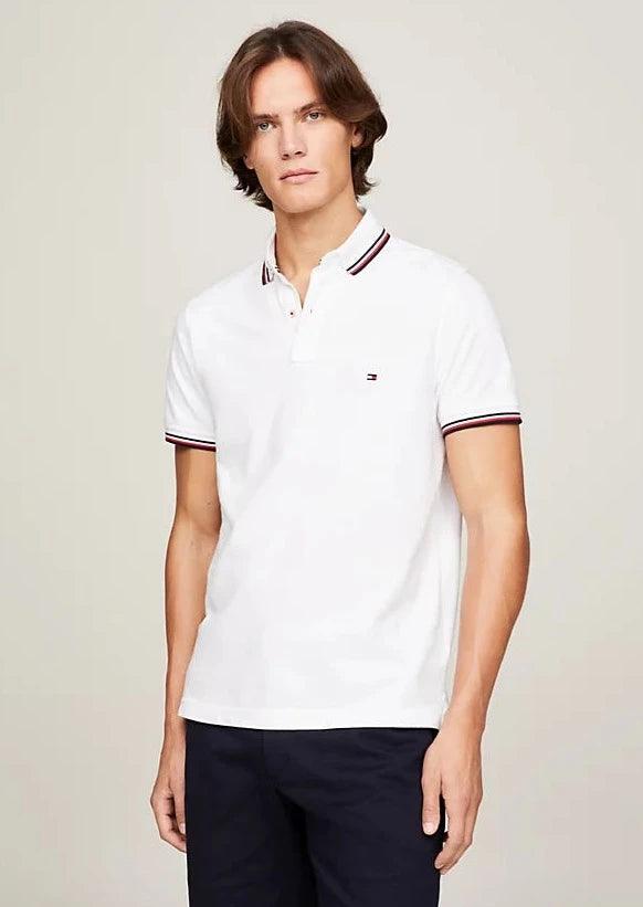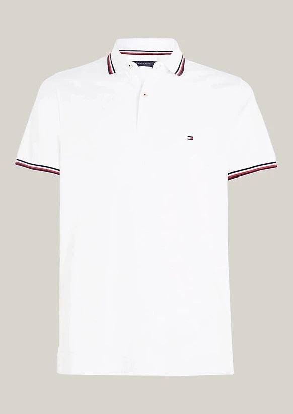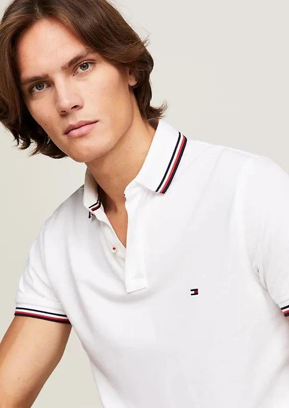 Polo ajusté Tomthtmy Hilfithtger blanc à liseré en coton bio