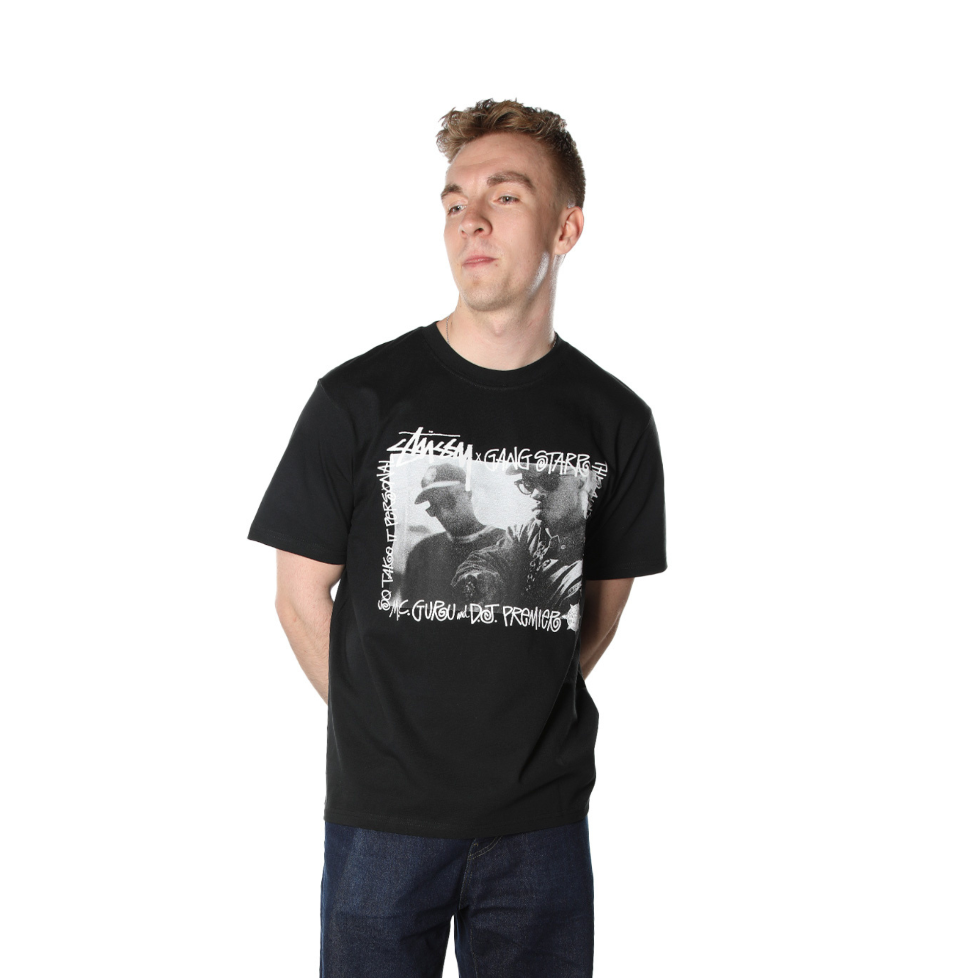 Stüssy præsenterer deres Gang Starr Take It Personal Tee i farven "Black". Denne T-shirt fejrer et unikt samarbejde mellem Stüssy og det legendariske hiphop-duo Gang Starr, og den kombinerer streetwear-design med hiphop-kultur.